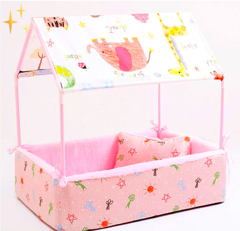 Gemütliche Fleece-Schlafmatte mit Dach und Kissen